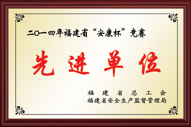 近日,福建省总工会、福建省安全生产监督管理局对2014年“安康杯”竞赛先进集体和优秀个人进行了通报表彰,公司被授予2014年福建省“安康杯”竞赛先进单位。