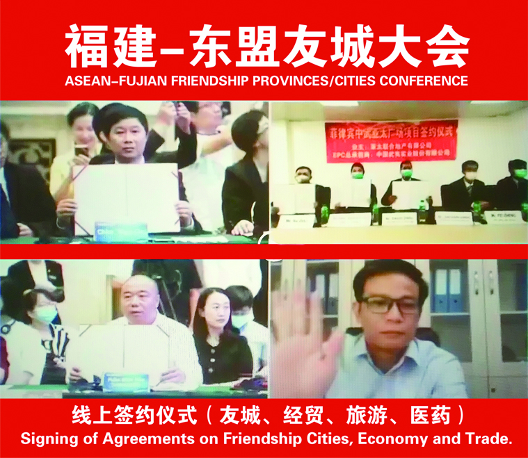 大会发布了《福建-东盟友城合作联合声明》,泉州市与菲律宾怡朗市、南安市与菲律宾曼达威市分别签署了结好协议书,双方有关部门和企业在线签署了一批经贸产能、旅游、医药等领域的项目合作协议。