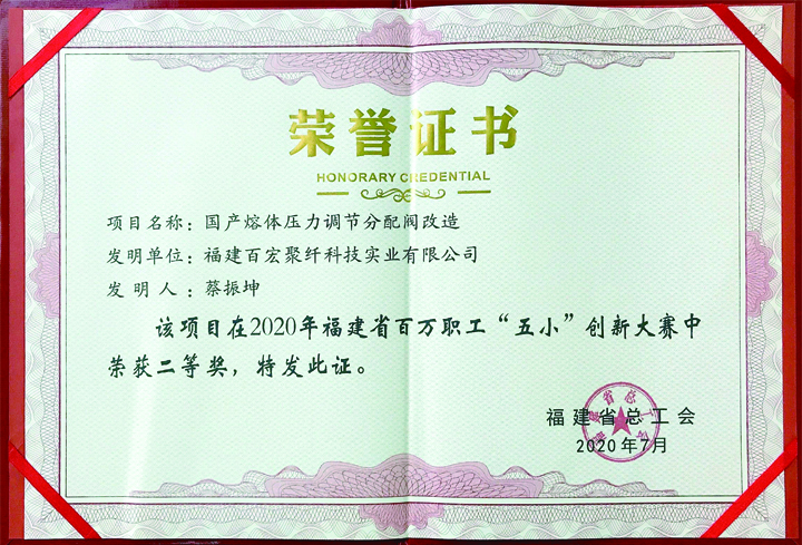 其中,蔡振坤报送的“国产熔体压力调节分配阀改造”项目荣获二等奖,奖金1000元。樊孝园的“聚合装置第一酯化反应釜立式搅拌器机密封系统改造”项目、文正平的“数据采集与监视控制系统”、叶建强的“FK-700加弹机油泵接头改进”项目同时荣获三等奖,奖金500元。