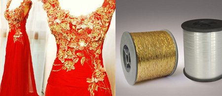 具有纵拉强度大,韧性好、亮度高等特点。主要用于服装装饰物(花边、丝带、商标)经编布、色织布、台布、及固体洗碗布、工艺品的金银丝线的制作领域。