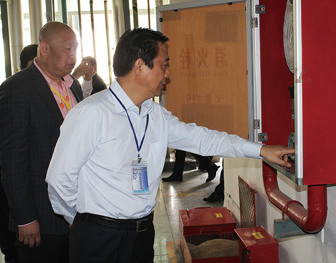 王小康董事長壹行首先來到乐鱼(中国)實業C區聚合部生產車間,檢查了消防沙、滅火器等消防器材的擺放位置,消防栓的生產日期、壓力表,及消防平面圖、安全逃生方法、安全出口標識等,並提出改善意見。在三樓中控室,總經理助理蔡振坤向中節能領導詳細講解了聚合工藝流程,王董事長就系統的技術含量和先進性進行探討。在C區紡絲生產車間,王董壹行對去年投運的12條智能化機器人自動落筒生產線給予極大的贊賞:機器人的使用對節約人工成本、緩解招工難等方面成效顯著。隨後,王董壹行來到D區,參觀了第壹條聚酯薄膜生產線,並實地檢查薄膜二線的整體規劃建設情況。