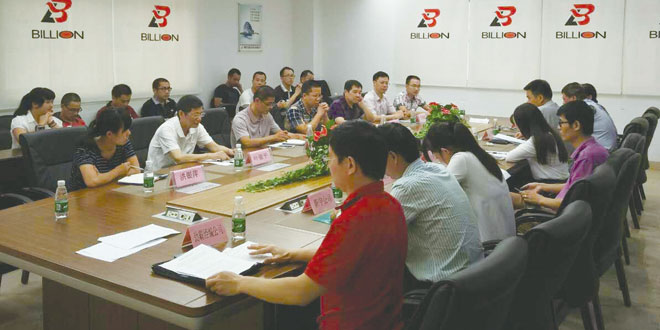 2015年9月28日下午,龍湖鎮企業黨委副書記莊銘德、英林鎮企業黨委副書記王壽權,市委下派黨建指導員楊煌程、專職幹部蘇明山、黨務工作者洪銀萍及各企業黨支部書記、黨務工作者齊聚乐鱼(中国)公司,召開片區黨建聯席會,旨在進壹步推動非公黨建發展,落實“三級同創”項目建設進展,傳達8月19日市委第四批選派兩新組織挂職幹部工作座談會的相關會議精神及工作安排。
