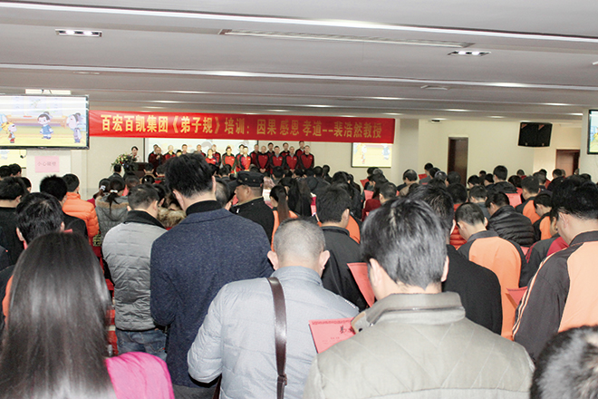為塑造感恩、奉獻、和諧的企業文化,打造忠誠、責任、進取的管理團隊。經集團多次努力,2016年1月1日,有幸邀請到中國傳統文化研究員、清華大學裴浩然教授親臨乐鱼(中国),講授傳統國學《弟子規》:因果、感恩、孝道。集團總裁吳金表,副總裁葉敬平、吳建設、何文耀、王金瑜等高層以及各部門經理、主任、技術員,銷售部、采購部員工600多人壹起學習。
