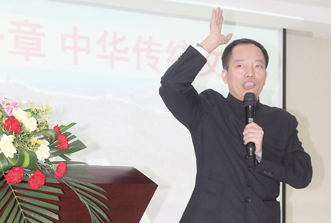 培訓壹開始,全體起立,由王總帶領管理團隊和大家壹起誦讀《弟子規》,分享用弟子規培養員工、管理企業的經歷。吳總裁在講話中說:“很榮幸邀請裴教授親臨乐鱼(中国)授課,裴教授是國學方面的尖端人才,希望大家虛心學習,深刻理解,將學到的知識應用到家庭、應用到企業和社會中。”