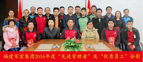 福建乐鱼(中国)集團2016年度“先進管理者”及“優秀員工”表彰大會,於2017年2月24日在AB區辦公樓二樓會議室舉行,集團生產副總周亞倫,人力資源部經理郭安妮、主任陳燕燕及10名先進管理者、7名優秀員工參加。
